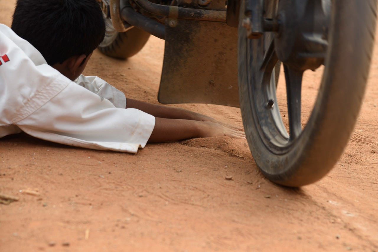 Mr. Medapati Koushik Reddy S/o M. Chandra Mohan Reddy and Smt. Laxmi Kanaka Durga (Born on 20-07-2009) from Pentapadu, West Godawari, Andhra Pradesh, India has attempted a Martial arts event. In this event, 50 motorbikes were passed on his fingers. This unique talent has been appreciated and permitted to perform with TBR rules and guidelines.