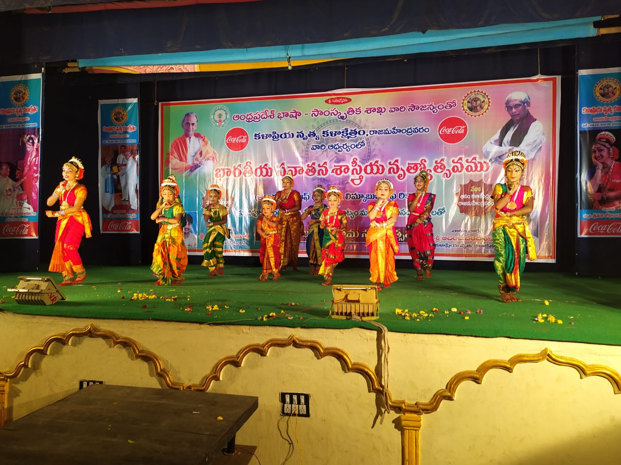 Kalapriya Nritya Kalakshetram, Rajahmundry, Andhra Pradesh, India had successfully completed nonstop 100 hours of a dance event, on ‘BHARATEEYA SANATHANA SHASTHREEYA NRITHYOTSAVAM.’ In this event, 1000 dancers have participated and performed Kuchipudi, Bharathanatyam, Perini, Andra Natyam and Folk dance from 6th to 10th November 2019 at Anam Kala Kendram, Rajahmundry. This event was conducted under the supervision of Mr. Achanta Chandrashekar and Mr. Lanka Sathish Kumar, under the courtesy of Andhra Pradesh Language and Cultural Department, AP.