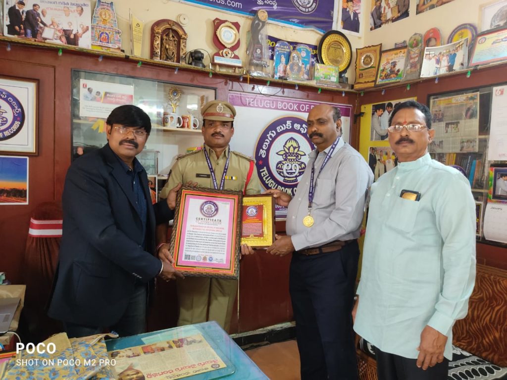 Mr. P.V.S. Bhavanisen S/o Narsaiah from Khanapur, Telangana State, India has worked in Khanapur Police Station as a Sub-Inspector of Police in the year 2019 and 2020. He was conducted Medical Camps, Job Melas to educate youth in the tribal areas and distributed various essential items like.. blankets, drinking water to the poor people during the winter season and rescued two persons from Godavari floods by bravely jumping into the river, and brought them to a safe place. On behalf of the Telugu Book of Records team with great pride and admiration.