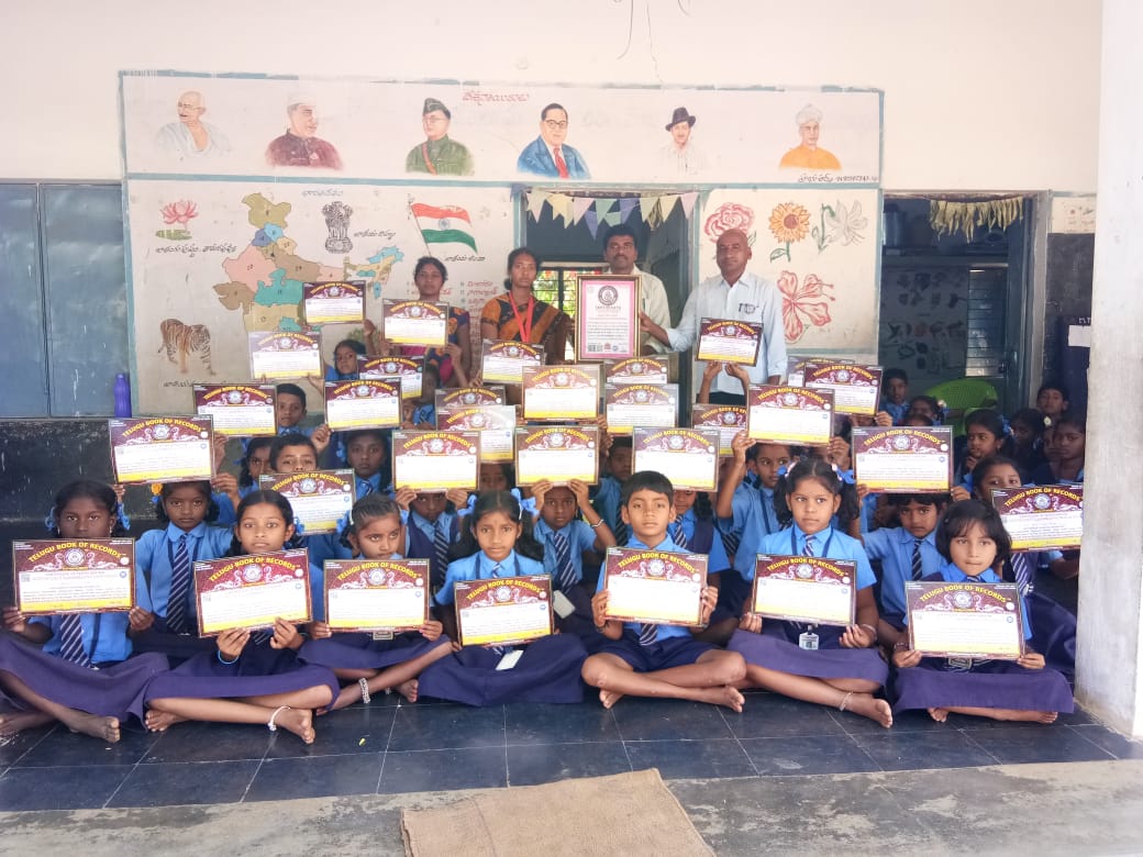 M.P.U.P.School, Abakaladoddi, Shantipuram (Mandal), Chitoor, Andhra Pradesh, India has conducted a unique event; in this event 32 school children were participated and recited 100 Telugu Rhymes with action for 60 minutes. This event was held in supervision of Smt. Paila Kanakadurgha, Lp Telugu on 15th February, 2019, at school premises, Abakaladoddi, Shantipuram.