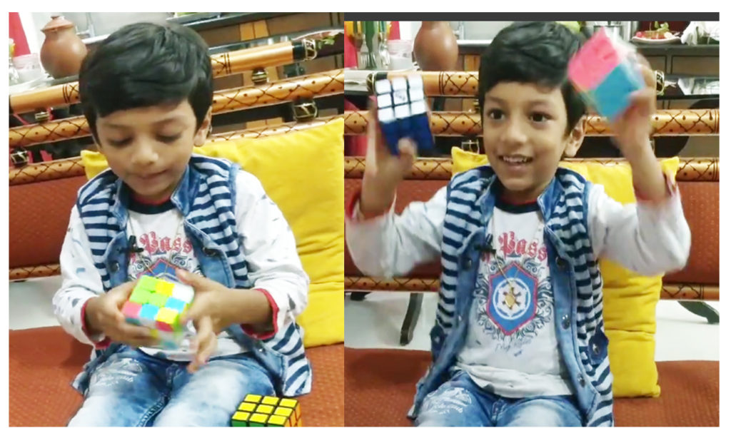 Master Dhruvan Chikkarapu S/o Mr. Uday Kiran Chikkarapu and Smt. Geeta Jyostna Kancharla ( born on 9th October 2016) from Vijayawada, Andhra Pradesh, India has memorized 330 questions answered from 13 categories while solving Rubik’s cube 3 times in 9 minutes duration. This rare memory event has been appreciated by the Telugu Book of Records in Kids category.