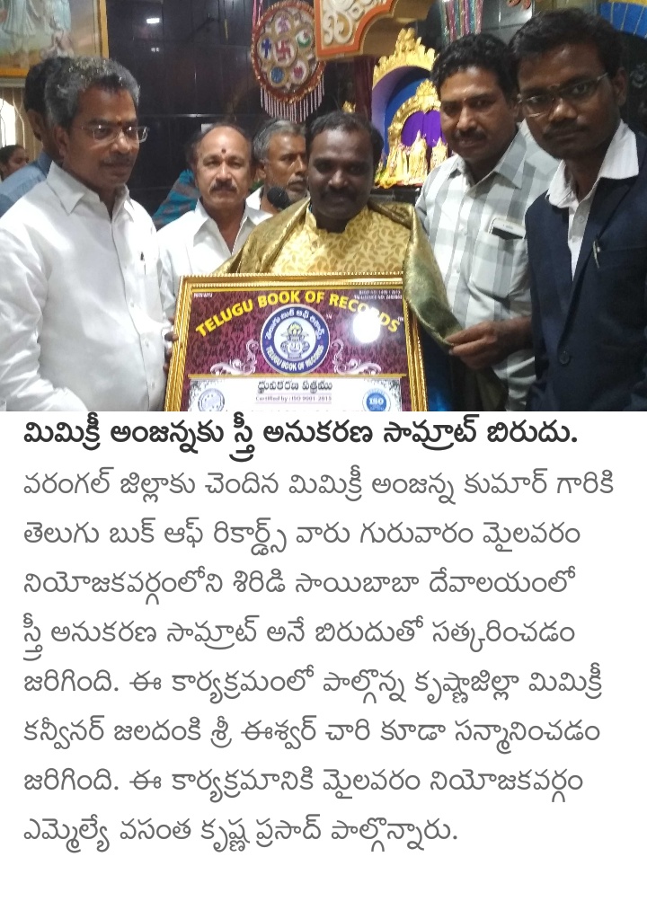 MIMICRY LEGENDARY Mr. ANJANNA RECEIVED MIMICRY SAMRAT AWARD