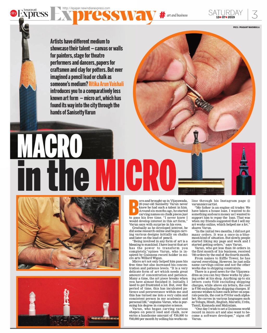 Mr. S. Varun Mani Krishna S/o Mr. S.N.V. Kiran Kumar, Smt. S. Madhavi ( born on 03-12-1998) from Vijayawada, Krishna Dist. Andhra Pradesh, India has carved India Border Map on tip of pencil lid with the dimensions of 4mm x 4mm with accurate shape and also he made many miniature crafts works like… dancing couple, Eiffel tower, world cup, Statue and the power of Hand and many more … This miniature crafts work has been appreciated by Telugu Book of Records.