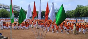 * In this special event a large congregation of 2587 students is going to frame a human formation of a mega tri-colored India map with small flags swaying in their hands and singing the song “Maa Tujhe Salaam”.