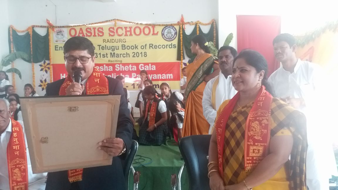 Oasis school and Oasis Educational Society, Rayadurgam, Hyderabad, Telangana State, India will going to conduct a spiritual event of ‘Most students reciting ‘Hanuman Chaleesa’ in a single venue”. In this event 1100 students will recite Hanuman Chaleesa 11 times for 3 hours. This event will be held under guidance of Sir A.Radhakrishna Correspondent, Smt. E. Kameshwari, School Principal, cultural co-ordinator D. Giri Kumari, music teachers Venkatehwarlu Kotapati and K .L .R S. Laxmi This event will be held on 31st March 2018, at School premises.