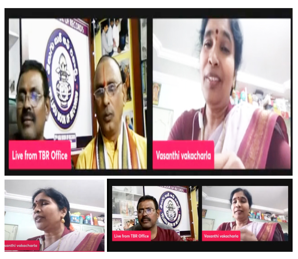 Smt. Vakacharla Vasanthi W/o Sri. Vakacharla Veera Venkata Satyanarayana (5th Feb 1976) from Mandapeta, East Godavari, Andhra Pradesh, India has recited non-stop 700 Bhagavath Geeta Slokas in just 75 minutes on 4th March 2022. This inspirational event has been appreciated by the Telugu Book of Records in the special spiritual category.