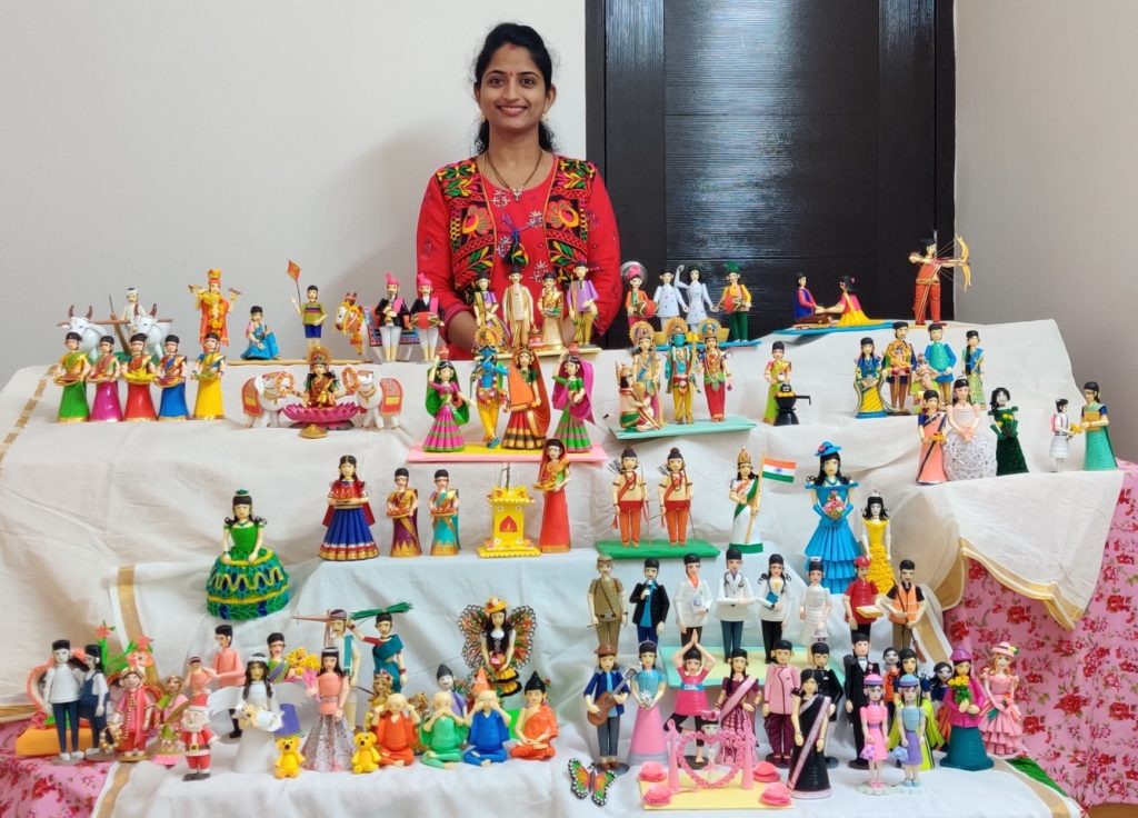 Smt. Jagatha N.V.L. Surekha D/O Jeelakarra Sathibabu ( Born on 20-08-1987) from Kondevaram, Kothapalli Mandal, East Godavari Dist, Andhra Pradesh, India has made 105 paper quilling 3D dolls measured height 5 Inches and above. These dolls have made 40 signification of special occasions like… Sankranthi, Ugadi, Deepavali, Holi, Raksha Bandhan, etc. These rare and paper Quilling 3D dolls have been appreciated by the Telugu Book of Records in the special category.