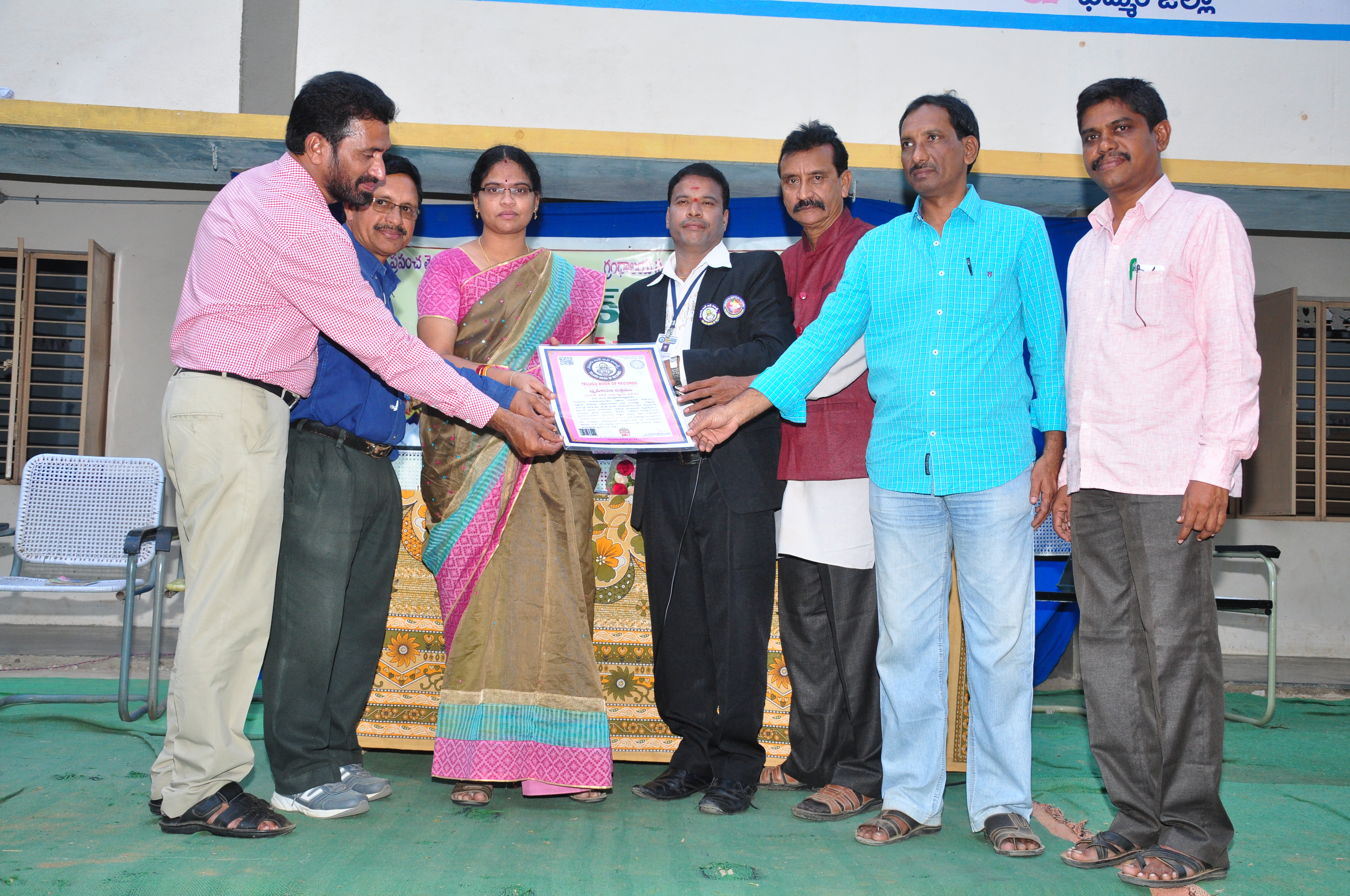 విద్యాశాఖ, శాఖాగ్రంధాలయం, స్వర్గీయ గార్లపాటి పాపాచలం, స్వర్గీయ బొల్లేపల్లి సత్యనారాయణ రాజు సేవాట్రస్ట్ , సత్తుపల్లి, నాగండ్ల హిమఘ్న, తండ్రి అనిల్ (యన్.ఆర్.ఐ) వారి ఆధ్వర్యంలో ప్రపంచ తెలుగు మహాసభలు, జాతీయ గ్రంధాలయ స్వర్ణోత్సవాలు, విధ్యాశాఖ త్రీఆర్స్, (పఠనం, లేఖనం, గణితం) కార్యక్రమాలను పురస్కరించుకొని తెలంగాణ రాష్ట్రం, ఖమ్మం జిల్లా, సత్తుపల్లిలో ‘సుమతీ శతక పద్య బృంద పఠనం’ అనే వినూత్న కార్యక్రమం 141 విద్యార్ధిని, విద్యార్ధులచే నిర్వహించిన ఈ కార్యక్రమం తెలుగు బుక్ అఫ్ రికార్డ్స్ బాలల విభాగంలో నమోదు చేస్తూ … అందిస్తున్న ధృవీకరణ పత్రం.